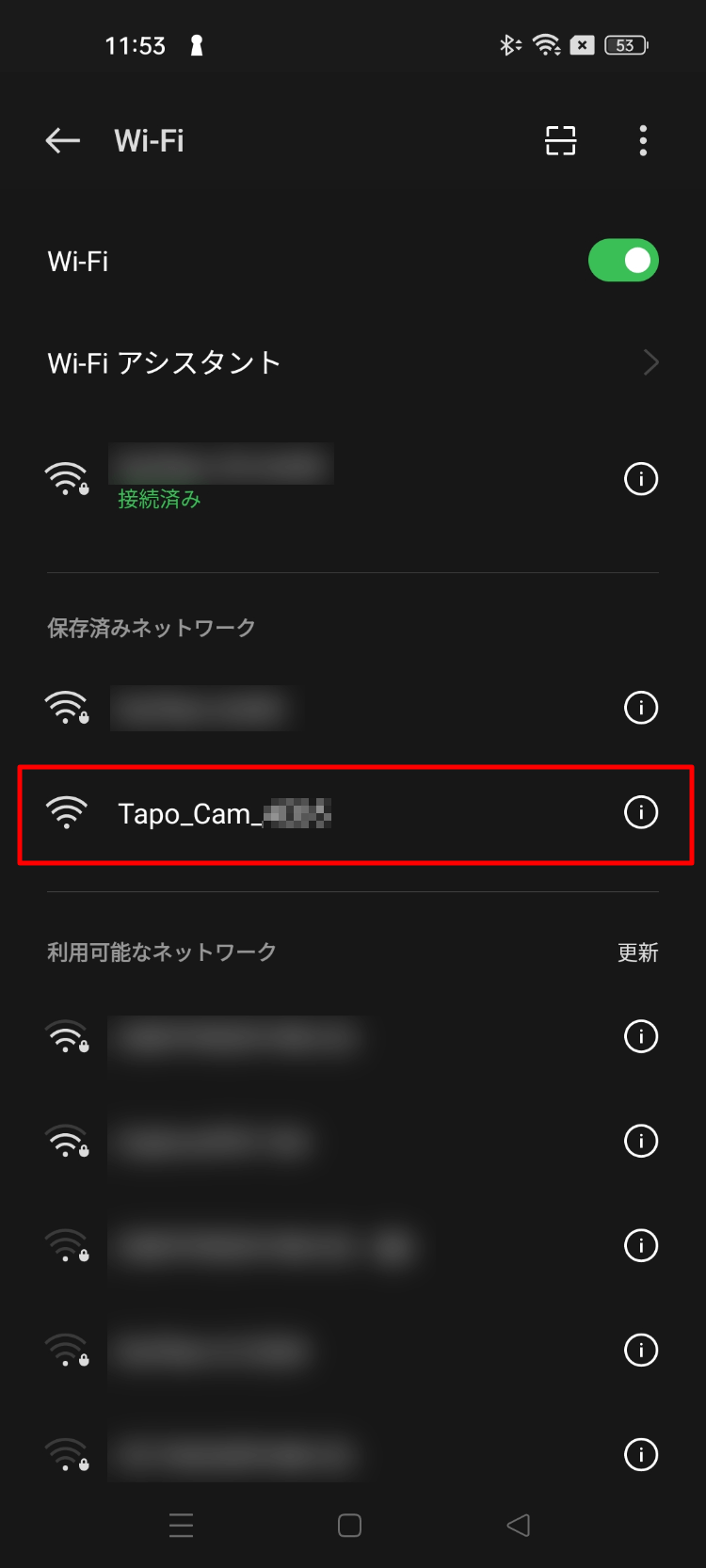 接続が完了すると、Tapoが使用するWi-Fiの選択画面になるので、家のWi-Fiを指定します。