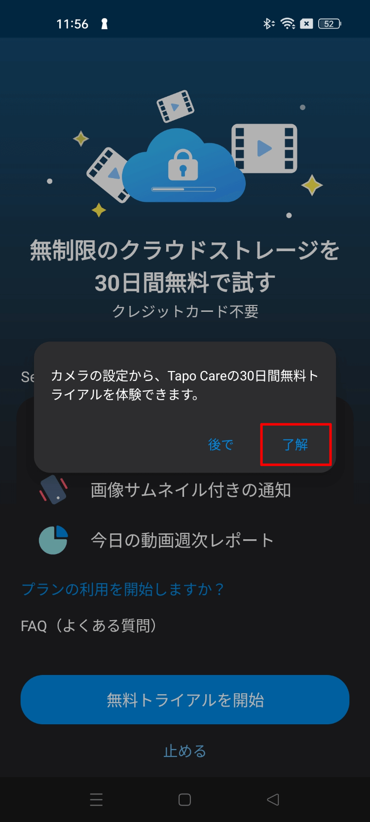 ローカルストレージ設定について表示されますが、ベビーモニターとしてはひとまず不要なので「了解」をタップ。