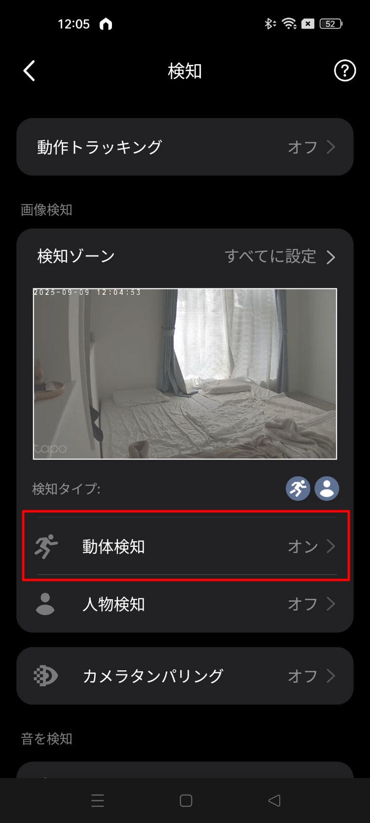 「動体検知」をタップ