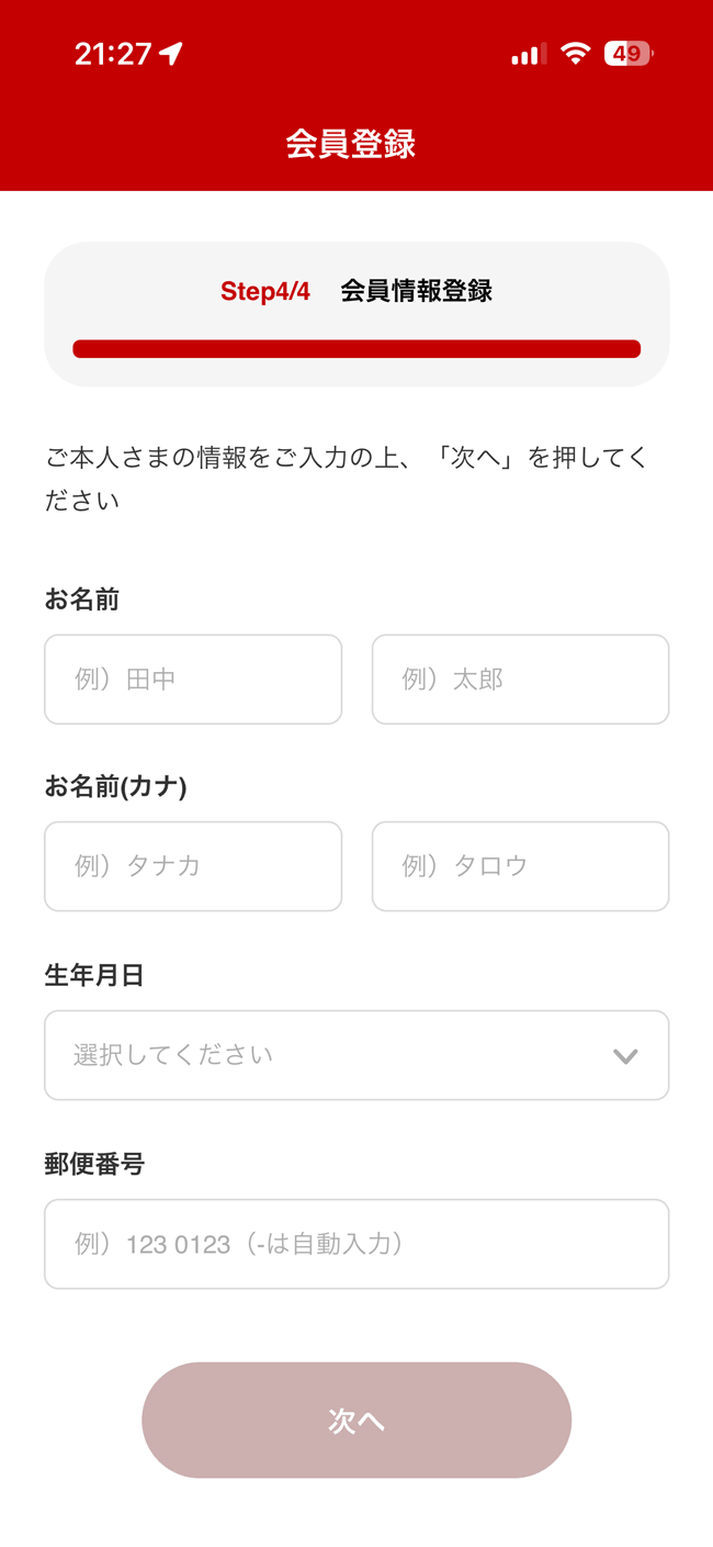 会員情報を登録。