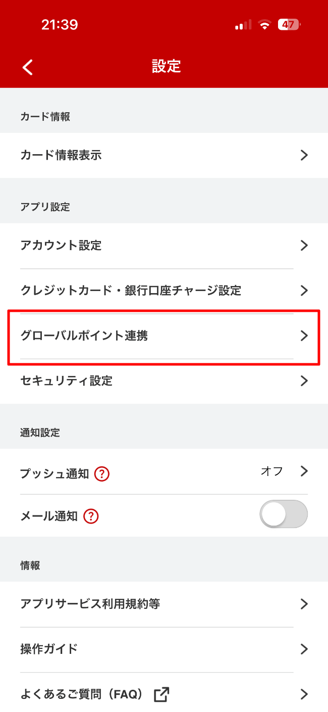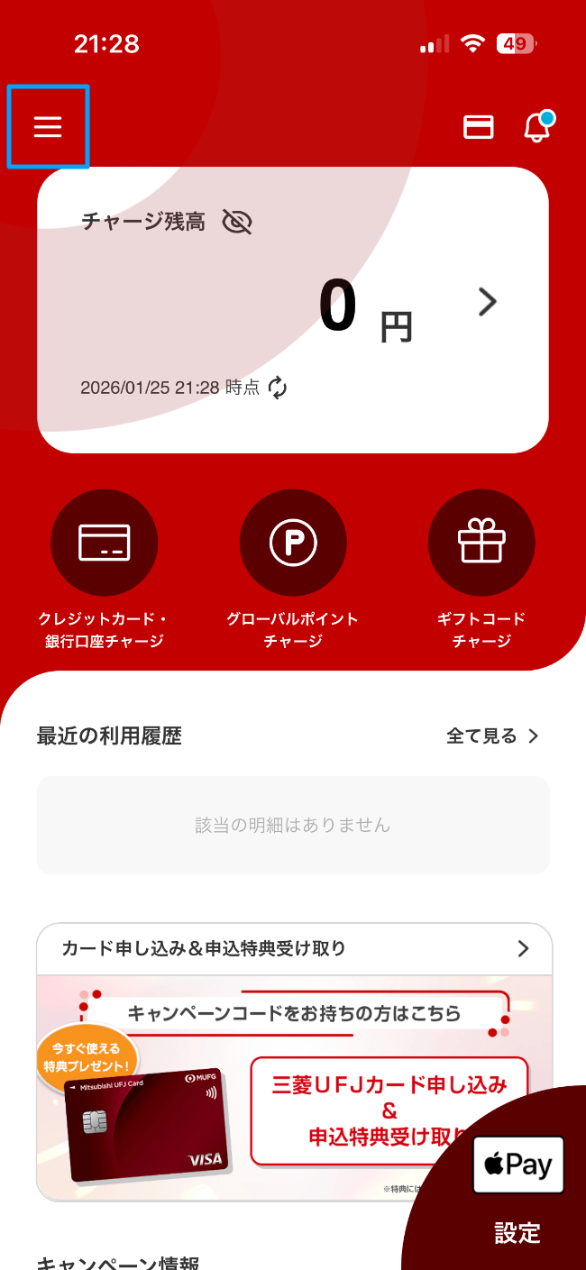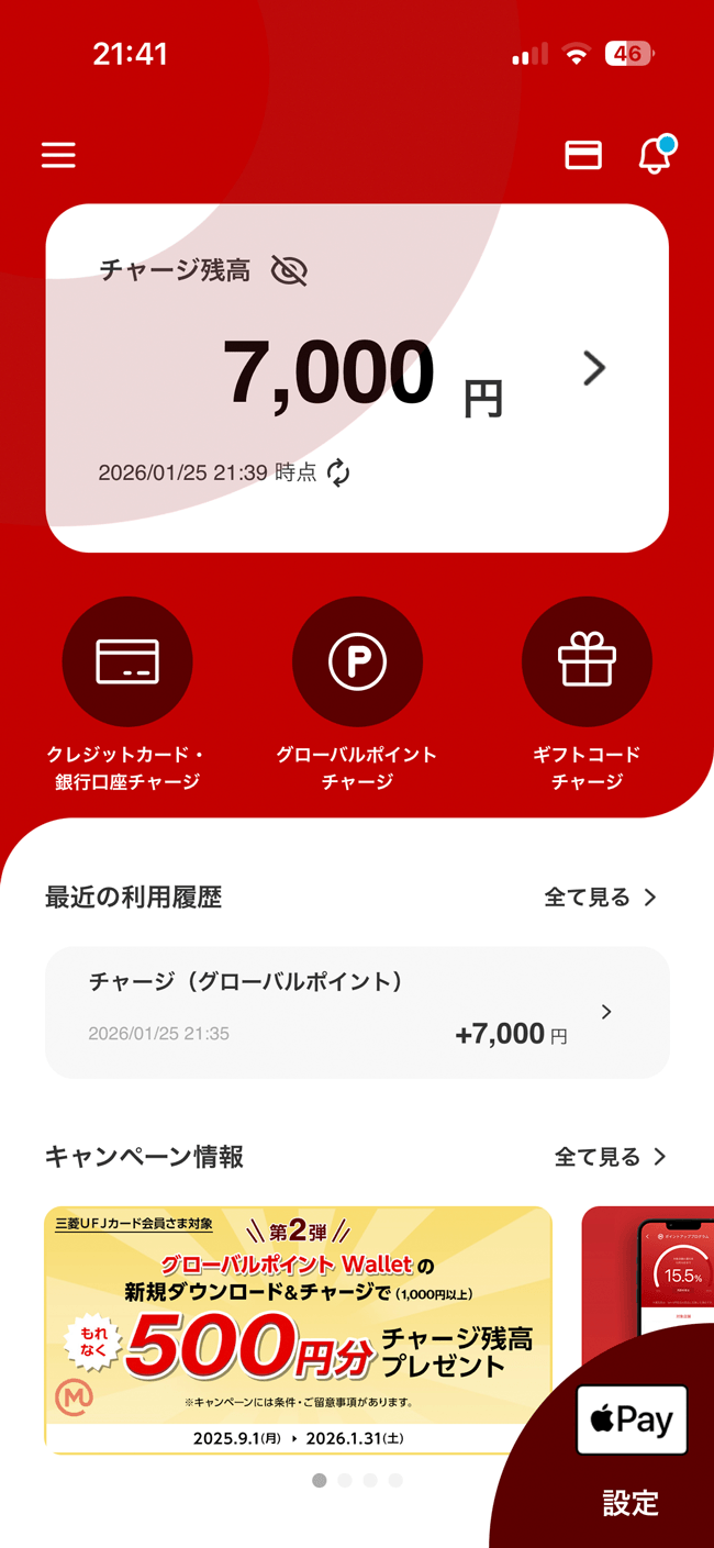 グローバルポイントと連携して、UFJカードで還元されたグローバルポイントを「グローバルポイント Wallet」にチャージするための設定をしていきます。