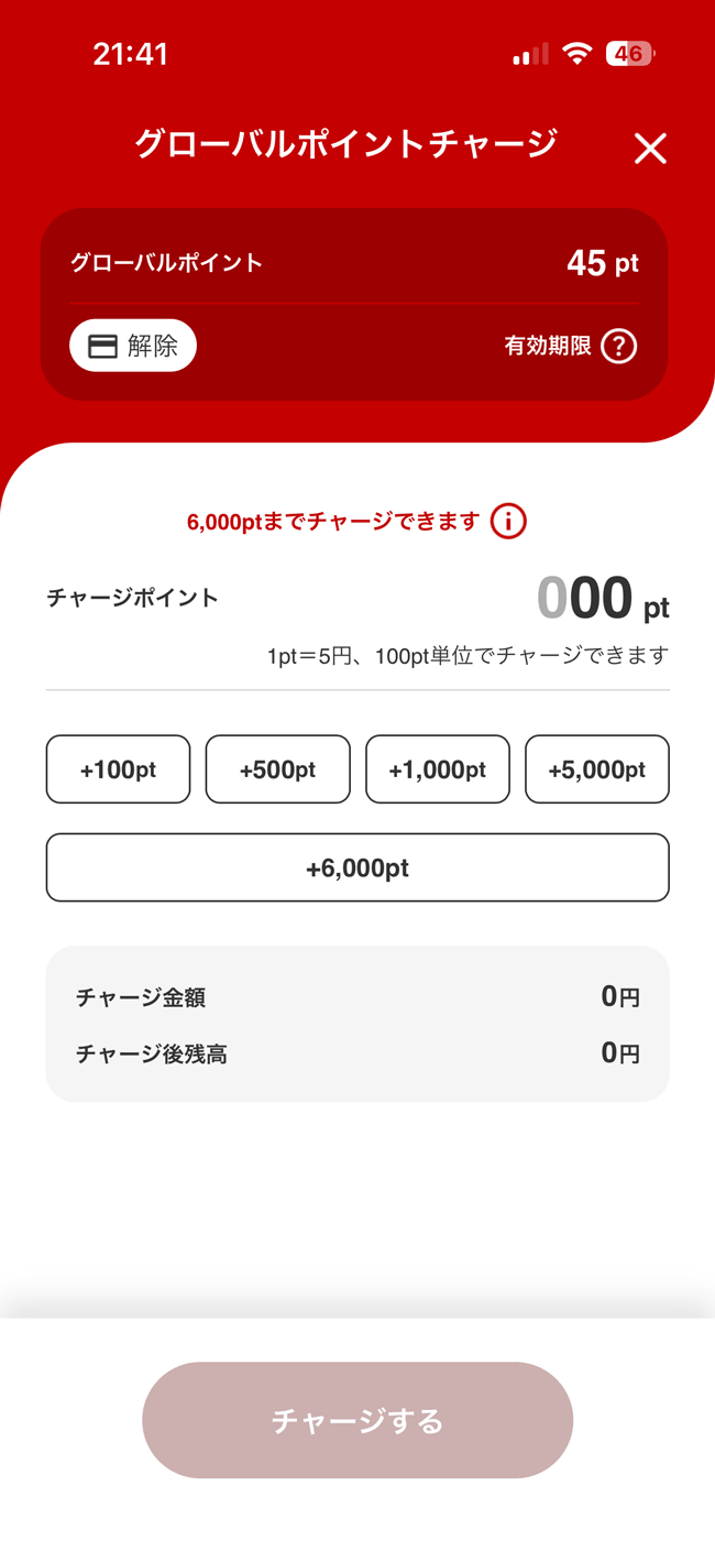 グローバルポイントと連携してチャージ