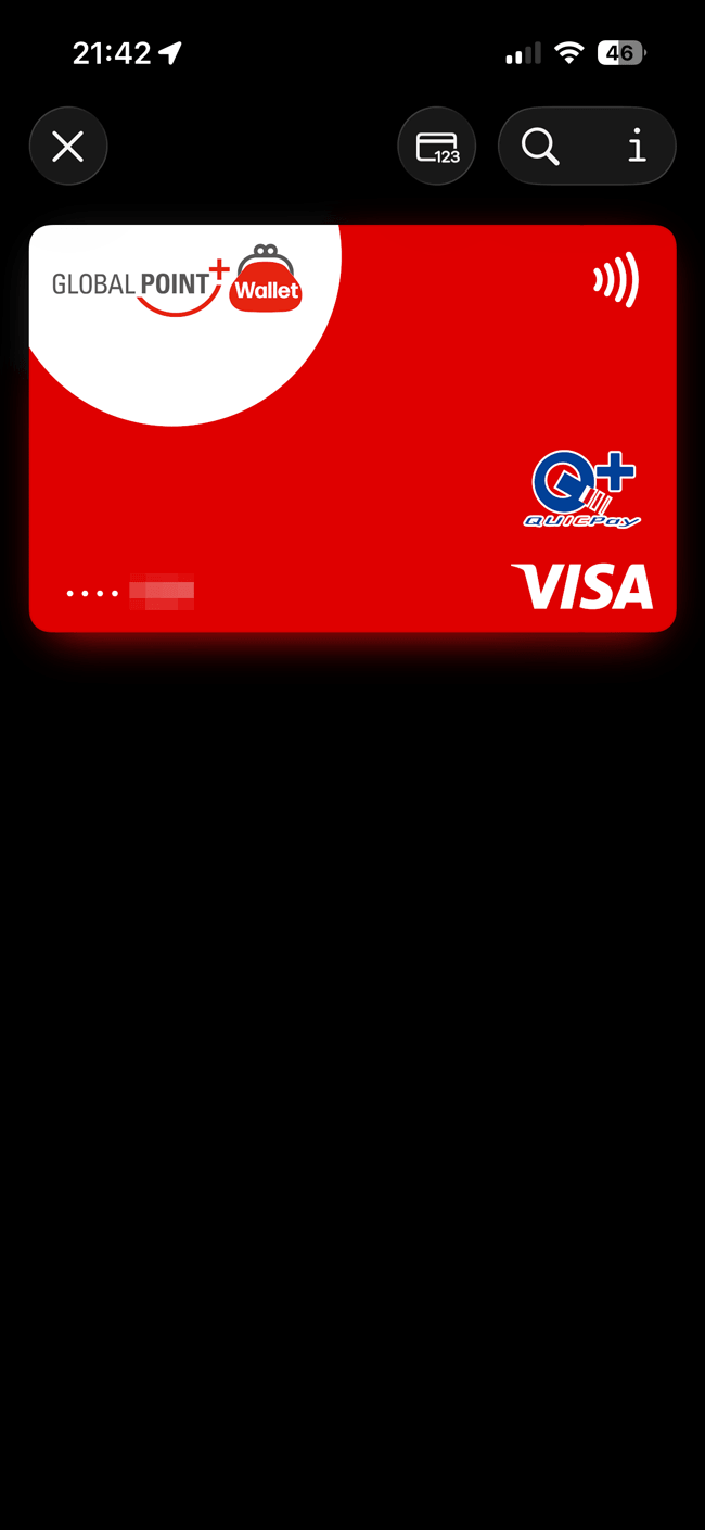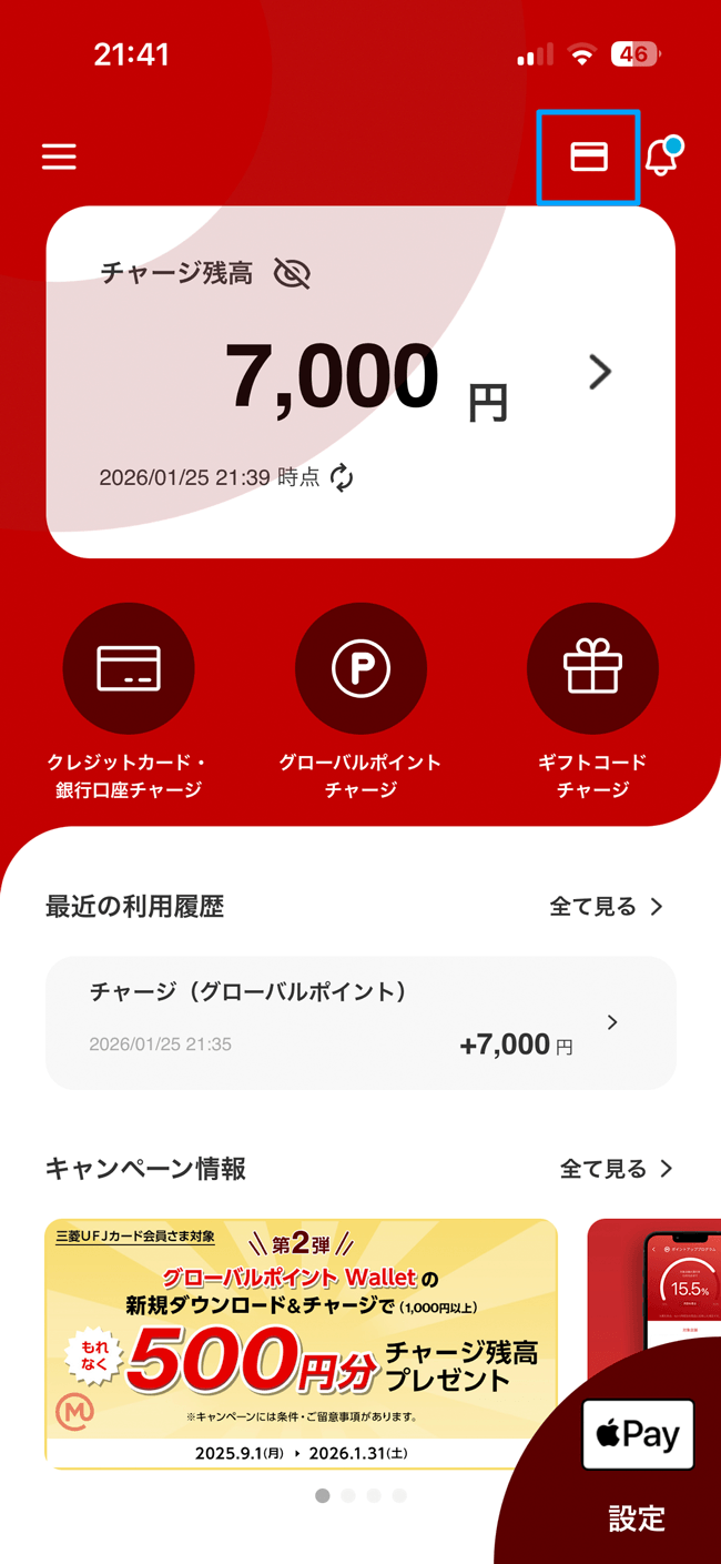 グローバルポイント Walletトップ右上のクレジットカードアイコンをタップすると